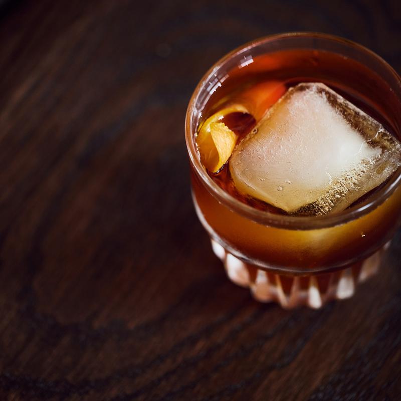 Rye whiskey, simple orange, house bourbon cherry, bitters.