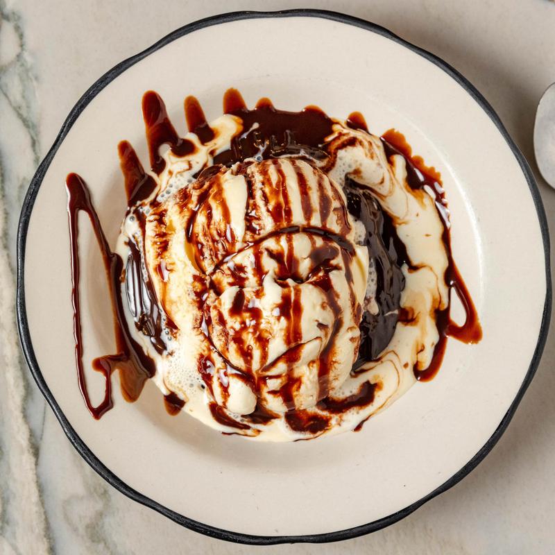 Cinnamon & stellar coffee ice cream, chocolate sauce and cinnamon dust.