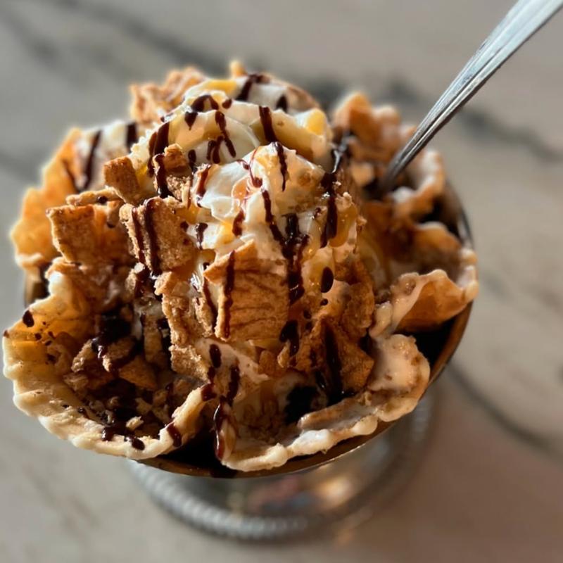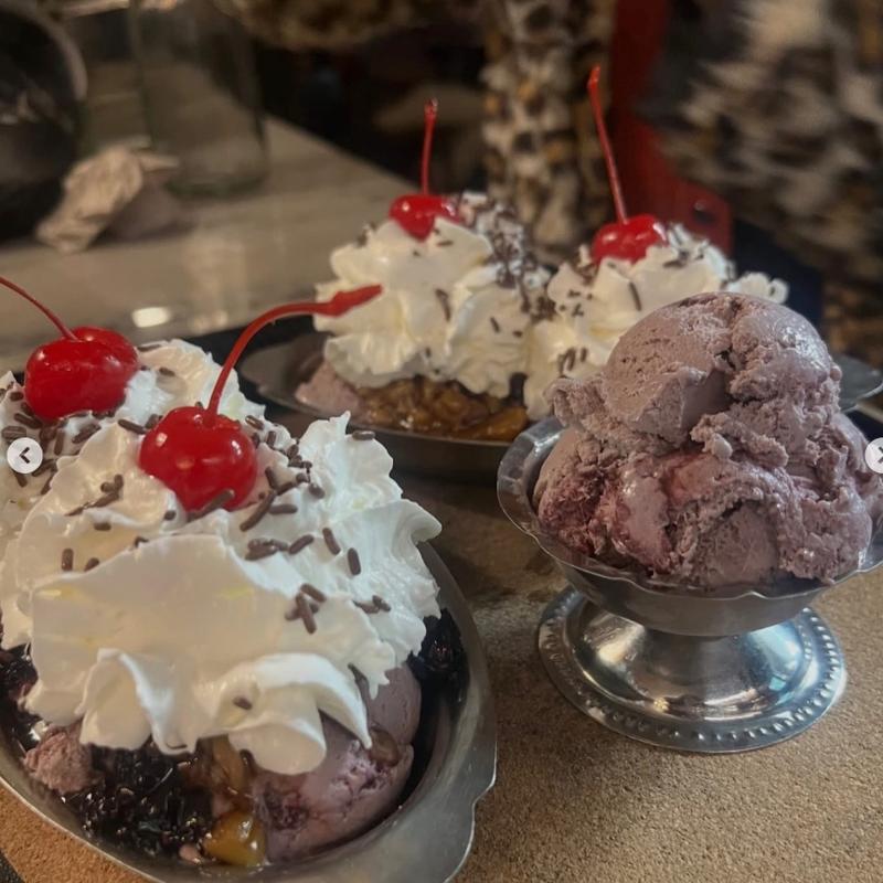 Purple daze ice cream, house-made berry compote, maple walnuts, whipped cream, white chocolate shavings & a cherry on top!