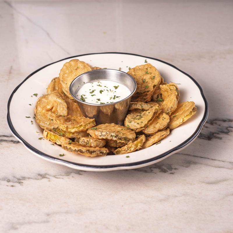 Crispy, tangy thick cut dill pickles lightly battered and fried to golden perfection. Served with a side of Ranch dipping sauce.