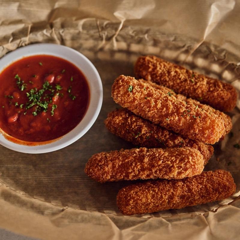 Fried mozzarella cheese served with a side of marinara.