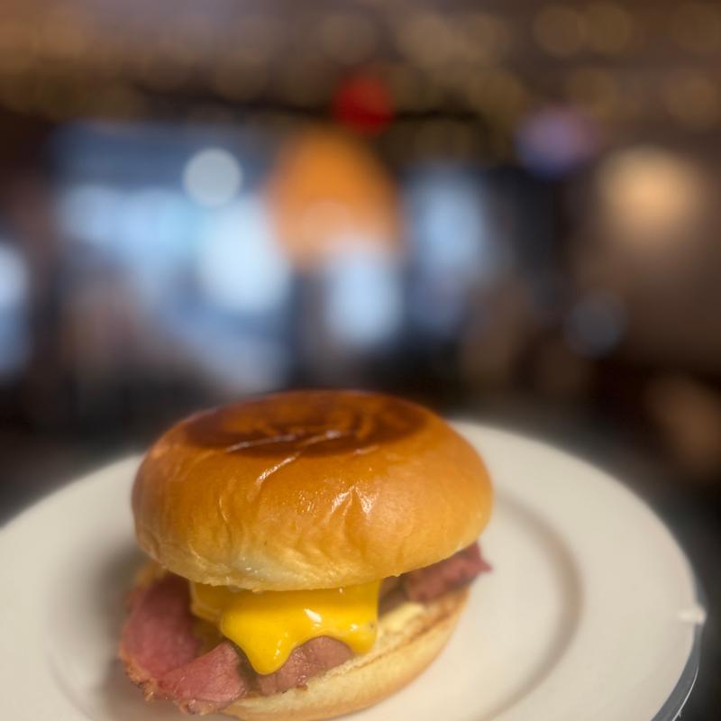Hearty soda fountain classic! Sliced pastrami, melted Swiss, sauerkraut & zesty Russian dressing served on toasted marble rye bread • Extra Pastrami | Add Fried Egg | Add Fries
