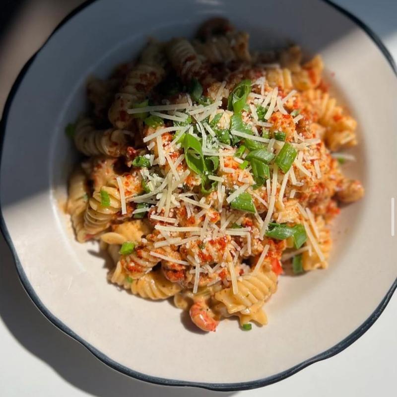 Rotini pasta with our creamy house made Louisiana crawfish sauce • Make it a 'Festival Queen' & add a Fried Catfish Fillet | Add Grilled or Fried Shrimp